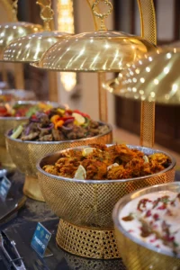 Sides are just as important as the main dish in Indian cuisine, again, depending on the climate and geographic position of each region, different ingredients are sources and therefore different sides are served. Sautéed vegetable and marinated meal dishes are popular sides, such as Bombay Potatoes – a generously seasoned portion of parboiled cubed potatoes. North India often serves a side of naan bread which is traditionally cooked in the tandoor at a high temperature for a crispy charcoal finish.